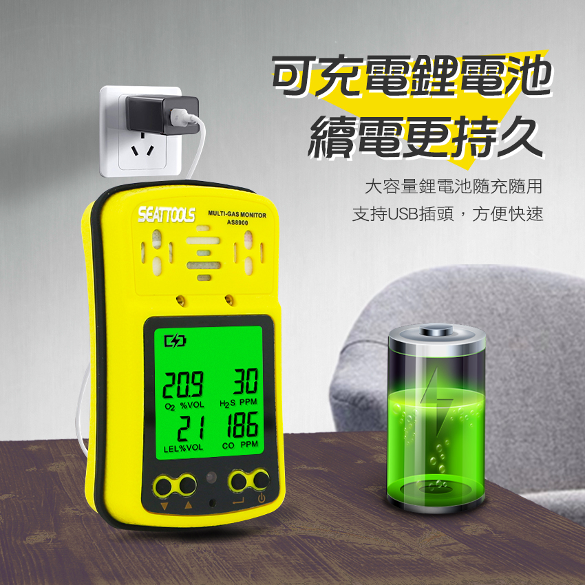 電池工作時間:待機8小時;搭配採樣泵無報警6小時