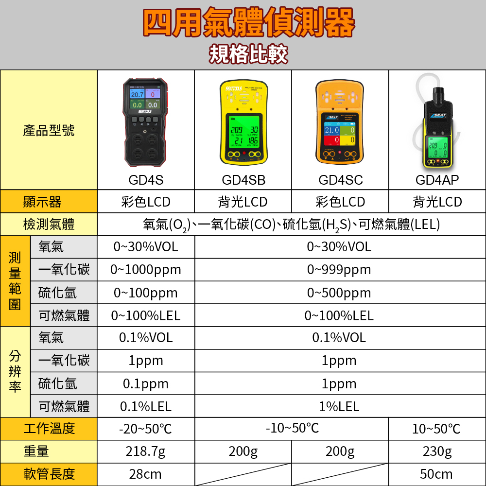 四用氣體偵測器是一款可攜式多功能氣體檢測儀,同時檢測O2、CO、H2S、LEL(可燃氣體)的濃度。提供光、振動、蜂鳴三重報警功能,讓您有效及時地得到報警信號,從而遠離危險,適用於於農業、消防、鋼鐵業、天然氣等等。